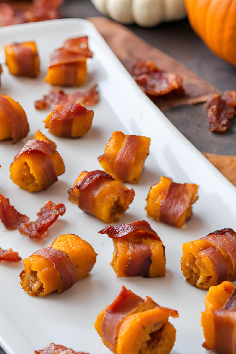 Diese Kürbis-Speck-Bites vereinen die Süße des Kürbisses mist dem würzigen Geschmack von knusprigem Speck.