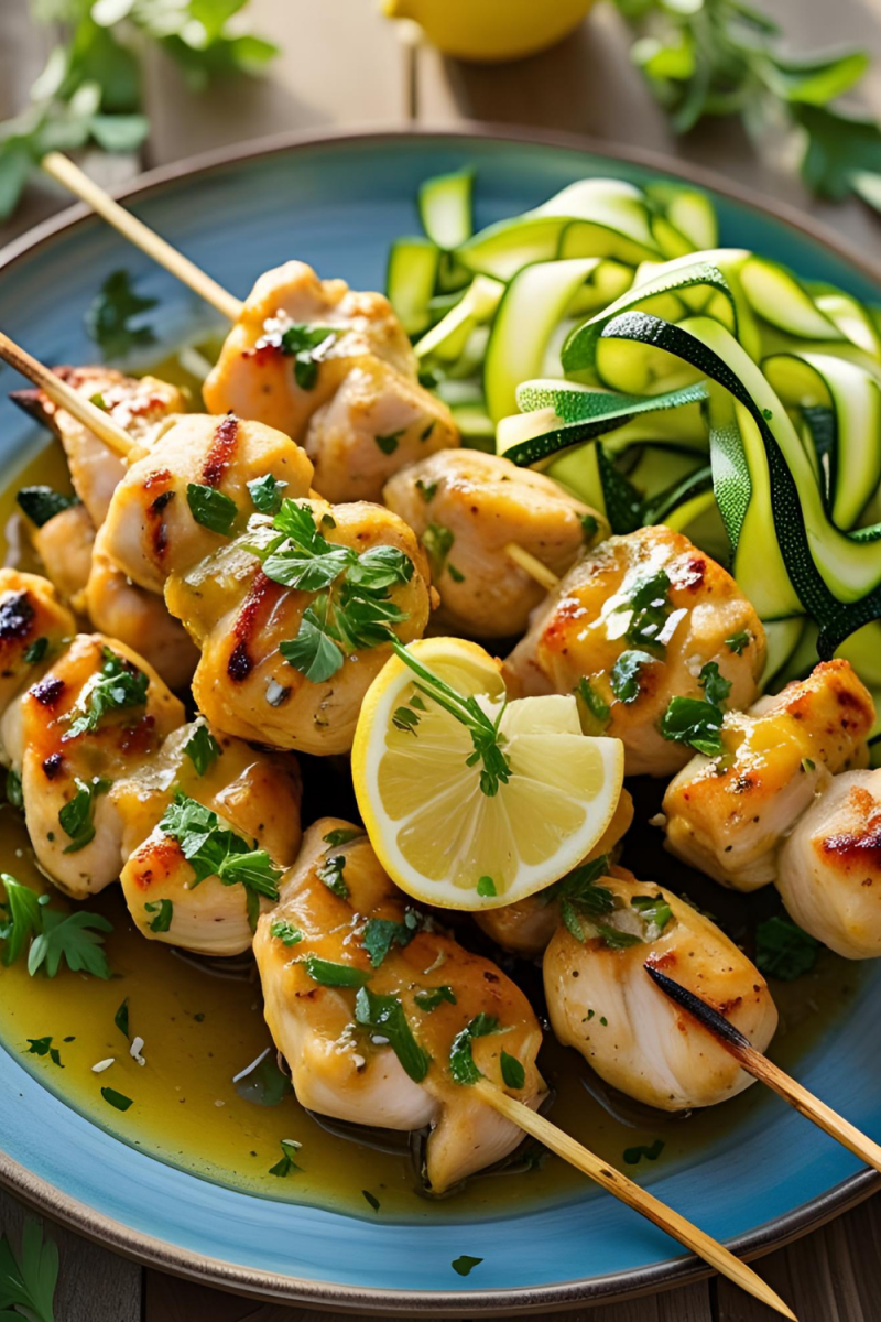 Zitronen-Hähnchenspieße mit Zucchinisalat