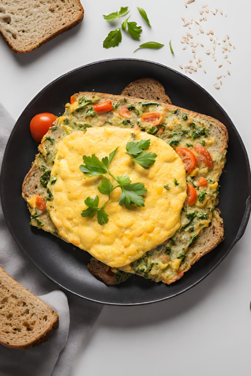 - Die verquirlten Eier über das Gemüse gießen und bei schwacher Hitze stocken lassen.