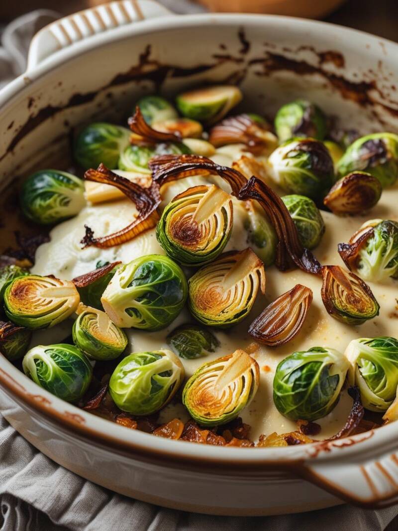 Keto-Rosenkohl-Gratin mit Winterheckenzwiebel